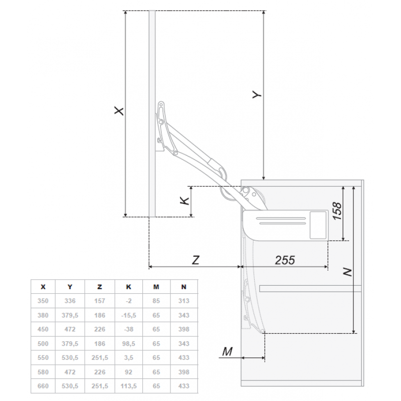 Фасад с системой LOFT открывается одним движением строго вверх, поэтому этот подъемный механизм требует достаточного пространства над гарнитуром. Как и другие механизмы серии AERO, LOFT дает полный доступ к содержимому шкафа. Фасад при открывании фиксируется в каждой точке траектории его хода, а подъемный механизм оснащен амортизатором для мягкого и плавного закрывания.