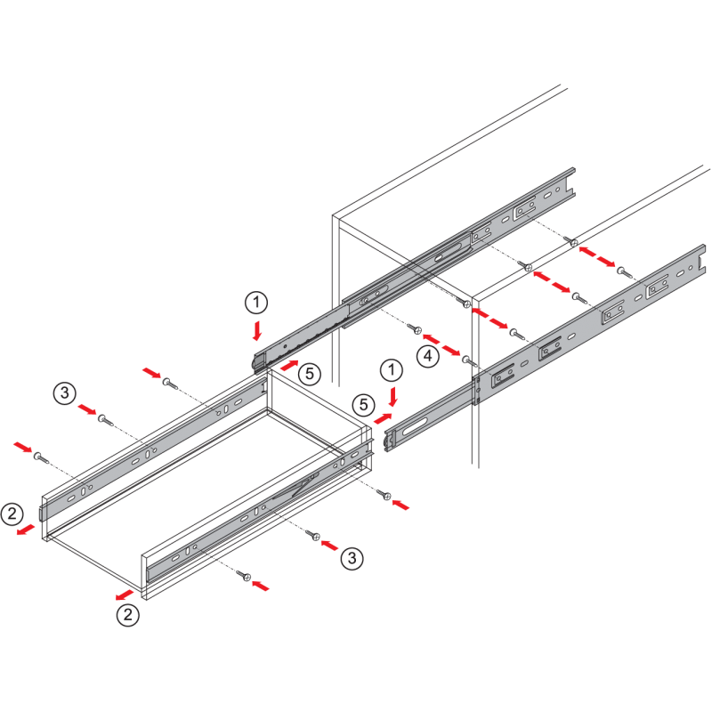 Шариковые направляющие полного выдвижения обладают мягким бесшумным ходом. Удобный съемный механизм позволяет легко устанавливать и снимать ящик. Стабильность выдвижения и прочность фиксации сохраняются на протяжении всего срока службы изделия, который составляет около 10 лет эксплуатации. Материал-основа направляющих – оцинкованная сталь, отличающаяся долговечностью и надежностью. Размерный ряд направляющих DB3001: от 250 до 500 мм. Рекомендуемая нагрузка для выдвижных ящиков с направляющими DB3001 – до 11 кг.