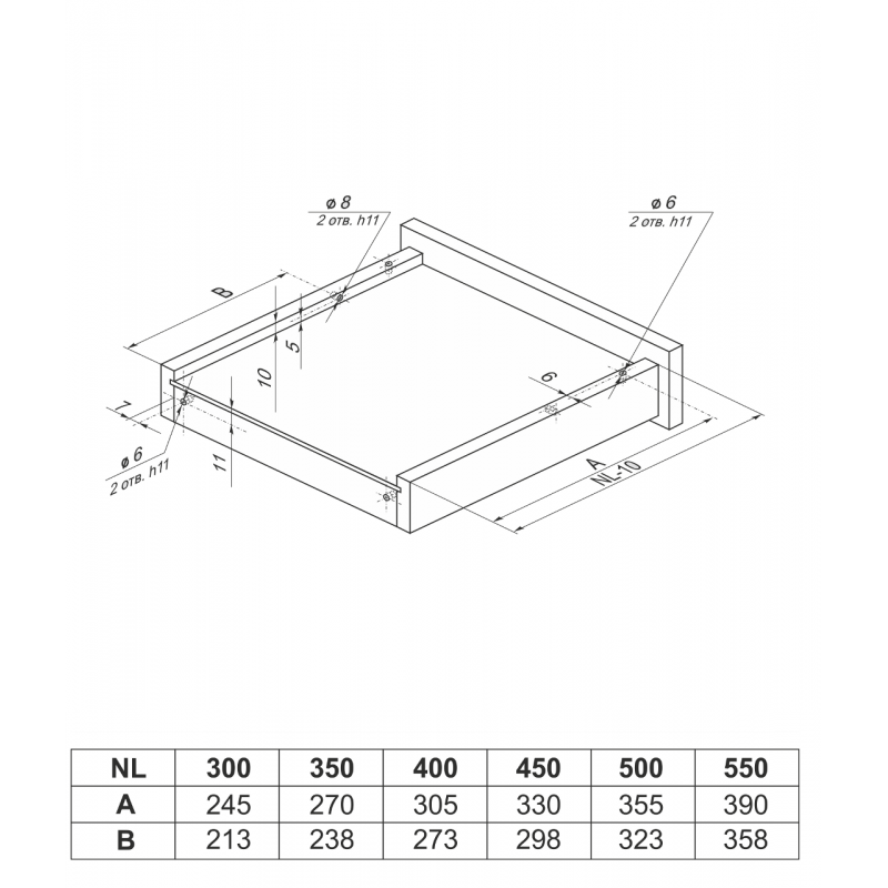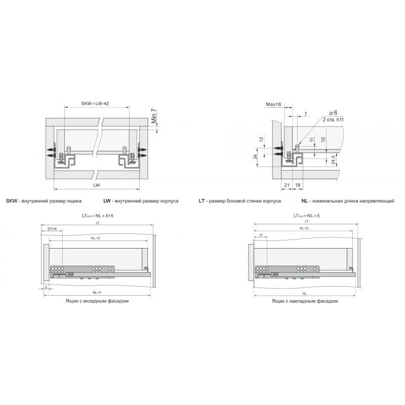 Насадной монтаж или крепление на цапфу предполагает сверление дополнительных отверстий в боковинах мебельного ящика. Установка ящика происходит под небольшим углом сверху на заранее выдвинутые части направляющих.