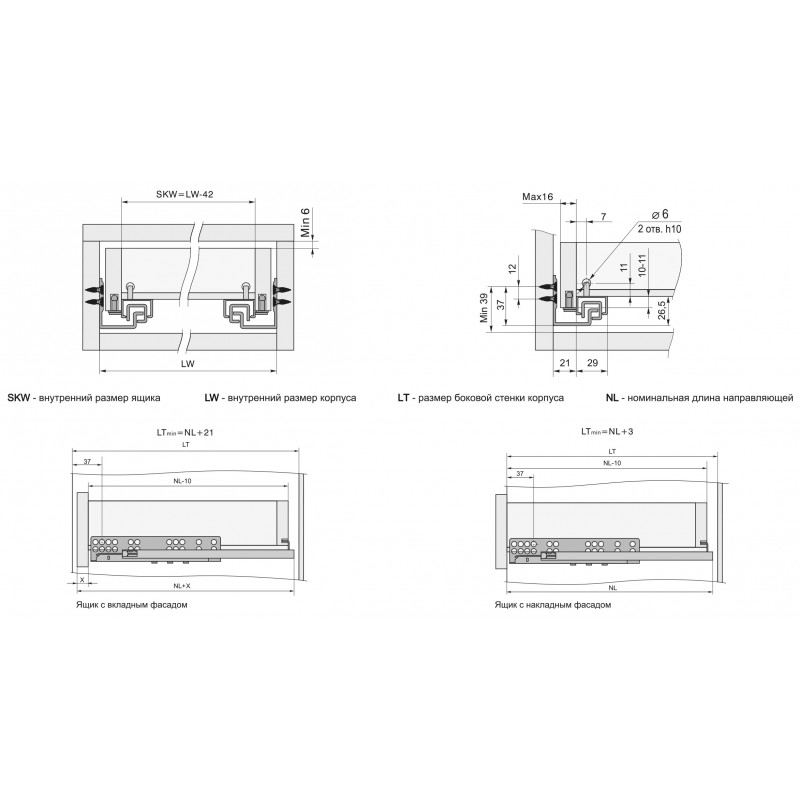 DB4463 – soft-closing (плавное закрывание) – это направляющие скрытого монтажа полного выдвижения, установка мебельного ящика на которых осуществляется при помощи насадного монтажа, то есть креплением на цапфу.