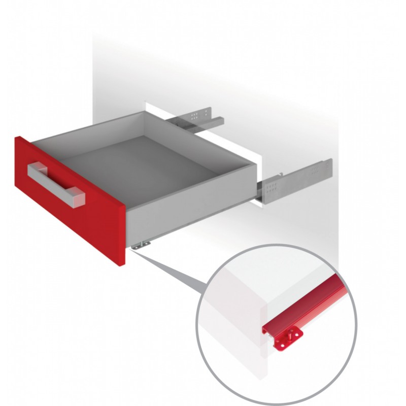Плавное закрывание обеспечивается благодаря стабильной работе масляного доводчика. Механизм доводки рассчитан на 50 000 циклов открывания / закрывания, что составляет не менее 10 лет эксплуатации. Ролики из пластика POM (полиоксиметилен) гарантируют легкое и бесшумное скольжение. Мебельные ящики на направляющих DB рассчитаны на среднюю оптимальную нагрузку 25 кг. Ребра жесткости обеспечивают высокую стабильность выдвижения нагруженного ящика и минимальные параметры провисания даже при выдвинутом полностью ящике.