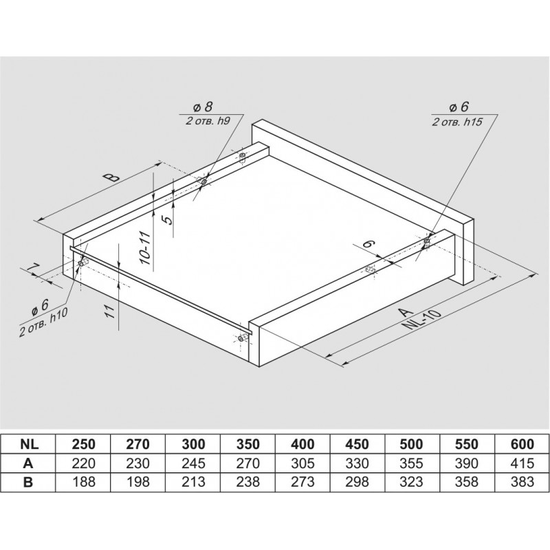 Насадной монтаж или крепление на цапфу – это альтернативный вид монтажа направляющих DB Компании BOYARD, который предполагает сверление дополнительных отверстий в боковинах мебельного ящика. Установка ящика происходит под небольшим углом сверху на заранее выдвинутые части направляющих.