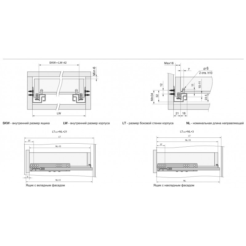 DB4464 – soft-closing (плавное закрывание) – это направляющие скрытого монтажа неполного выдвижения, установка мебельного ящика на которых осуществляется при помощи насадного монтажа, то есть креплением на цапфу.