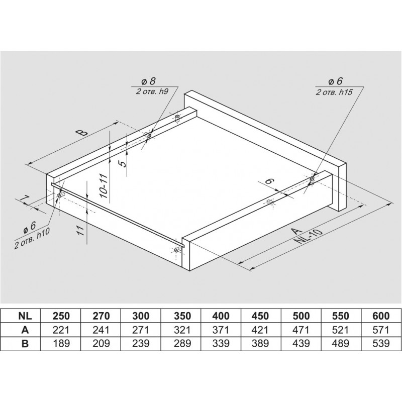 Насадной монтаж или крепление на цапфу – это альтернативный вид монтажа направляющих DB Компании BOYARD, который предполагает сверление дополнительных отверстий в боковинах мебельного ящика. Установка ящика происходит под небольшим углом сверху на заранее выдвинутые части направляющих.