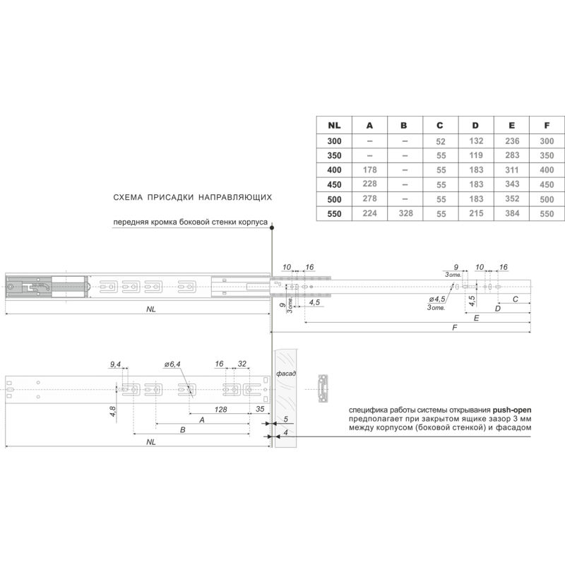Тип движения:push-to-open (выдвижение после нажатия)