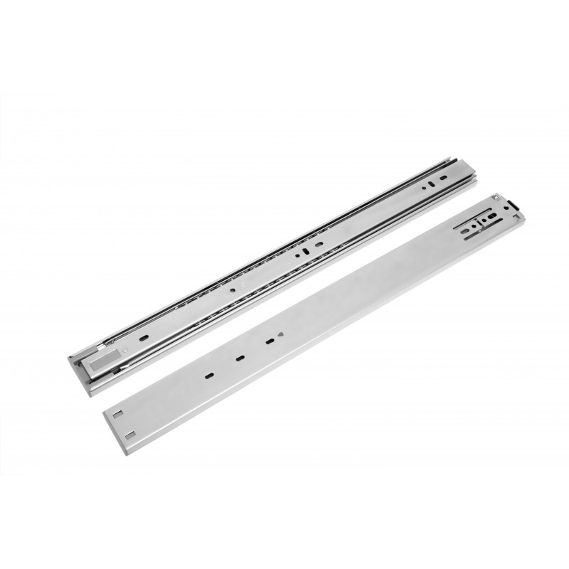 DB4513 – шариковые направляющие полного выдвижения с функцией «Push-to-Open» – решение для стильной и функциональной мебели, которая не предполагает установку ручек. Направляющие DB4513 плавно выдвигают ящик от легкого нажатия на любую точку фасада. Функция полного выдвижения обеспечивает абсолютный доступ к содержимому ящика и отвечает за эргономичность мебели. Модель надежна и долговечна: обладает оптимальной грузоподъемностью до 30кг и гарантирует бесперебойную работу механизма на протяжении 50 000 циклов открывания/закрывания.
