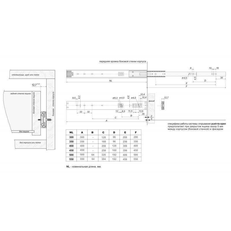 DB4513 – шариковые направляющие полного выдвижения с функцией «Push-to-Open» – решение для стильной и функциональной мебели, которая не предполагает установку ручек. Направляющие DB4513 плавно выдвигают ящик от легкого нажатия на любую точку фасада. Функция полного выдвижения обеспечивает абсолютный доступ к содержимому ящика и отвечает за эргономичность мебели. Модель надежна и долговечна: обладает оптимальной грузоподъемностью до 30кг и гарантирует бесперебойную работу механизма на протяжении 50 000 циклов открывания/закрывания. Преимуществом DB4513 в оптимальном соотношении цены, функциональности и качества. Модель позволяет придать мебели сегмента «эконом» и «средний» высокие потребительские характеристики и лоск дорогой мебели без удорожания общей стоимости гарнитура. Направляющие DB4513 делают мебель стильной, современной, элегантной и с успехом интегрируются в современные интерьеры. Это суперсовременное решение для людей, которые особенно ценят удобство мебели.