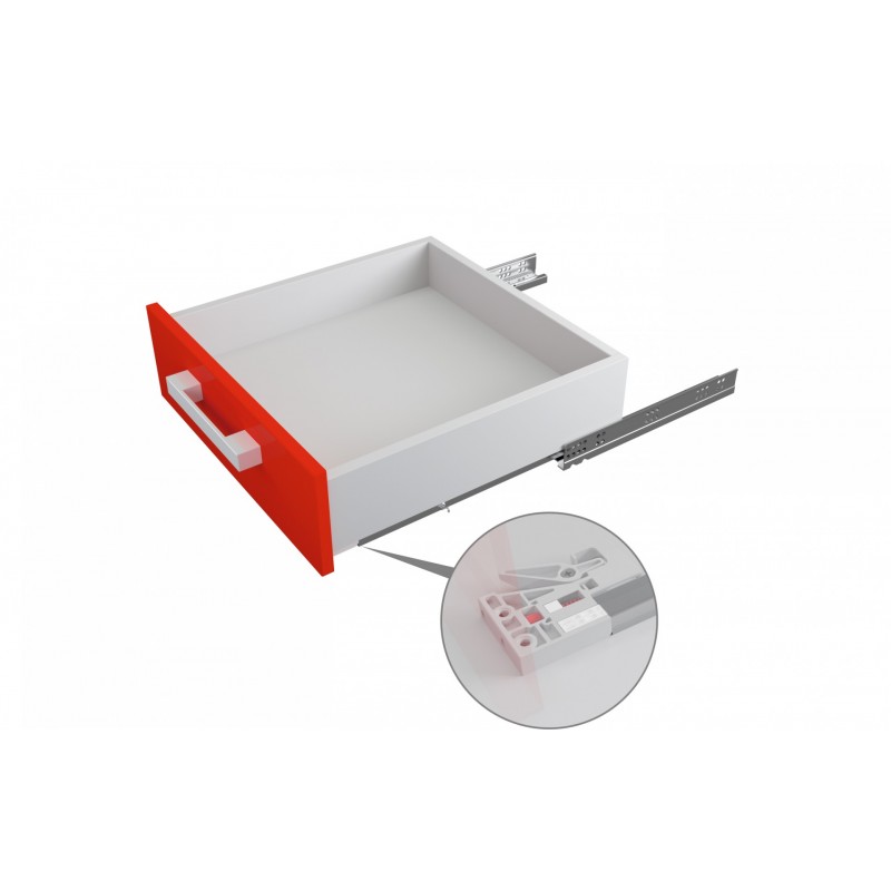 Направляющие скрытого монтажа В-slide предусматривают версию полного и частичного выдвижения. Механизмы с артикулами, заканчивающимися на нечетные цифры DB8881, DB8883 — полного выдвижения. Четные артикулы DB8882, DB8884 говорят о неполном выдвижении.