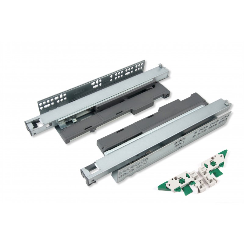 Модель обладает уникальным адаптивным доводчиком, что позволяет использовать направляющие на выдвижных ящиках любой ширины, под любые нагрузки и нужды.