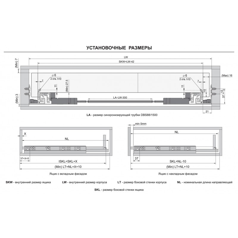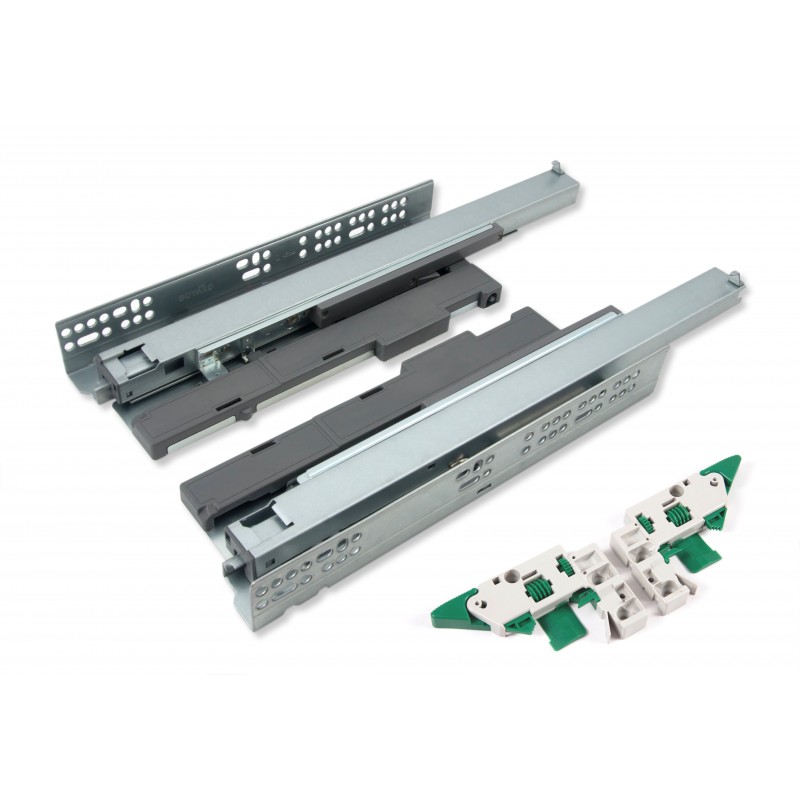 REVERSE DB8888 - направляющие скрытого надвижного монтажа, полного выдвижения с функцией открывания от нажатия, которая совмещена с системой амортизации для более мягкого закрывания ящика. Система REVERSE DB8888 открывает выдвижной ящик от нажатия на центральную и околоцентральную части фасада. Механизм открывания не повреждается даже в случаях, когда ящик по привычке открывают без нажатия, просто вытягивая его на себя. Направляющие REVERSE, имеют трёхмерную регулировку фасада: по ширине ±2 мм, глубине -3 мм и высоте +3 мм. Зубчато-реечный механизм DB8888 обеспечивает синхронизацию и защищает от перекосов. Для более стабильной работы широких выдвижных ящиков с широкими фасадами предусмотрена синхронизирующая трубка DBS88/1500, которая приобретается отдельно. Трубка DBS88/1500 устанавливается дополнительно при ширине фасада выдвижного ящика от 700 мм, но по желанию клиента может приобретаться для выдвижных ящиков меньшей ширины. Модель обладает уникальным адаптивным доводчиком, что позволяет использовать направляющие на выдвижных ящиках любой ширины, под любые нагрузки и нужды. DB8888 выдерживают нагрузку 35 кг и гарантируют 60 000 циклов стабильной работы. Раскрой и присадочные размеры аналогичны направляющим DB8881, DB8883, DB8886, а также австрийским аналогам.