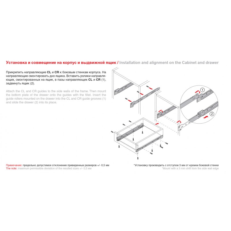 Направляющие роликовые для мебельных ящиков. Выдвижной механизм одинарный, неполного выдвижения, с самозатягиванием, двойным остановом и защитой от выкатывания. Форма профиля имеет дополнительное ребро жесткости. Ролик цельный, материал ролика POM.