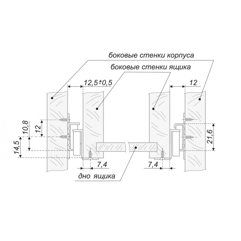 Направляющие роликовые для мебельных ящиков. Выдвижной механизм одинарный, неполного выдвижения, с самозатягиванием, двойным остановом и защитой от выкатывания. Ролик цельный, материал ролика ABS.