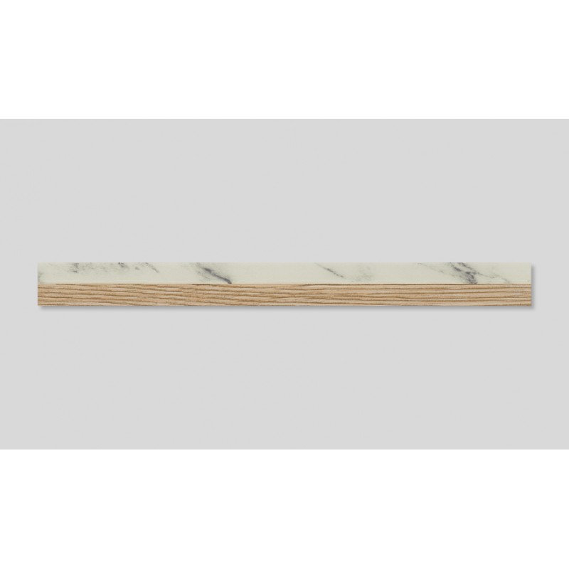 Кромка серии Дуо состоит из двух одинаковых по ширине полос, имеющих разные декоры. Полосы кромки H8905 хорошо подходят к двум декорам: Мрамор Каррара белый и Дуб Гладстоун песочный. Если нанести эту кромку на плиту в том же декоре, то создаётся впечатление панели, состоящей из двух различных материалов с внутренней и внешней стороны.