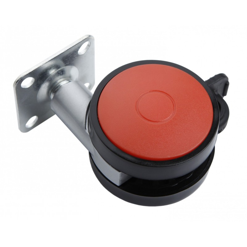 Колесо мебельное для выкатных тумб, кресел. На опору установлен тормоз, который четко фиксирует мебель в одном положении. Материал: основа нейлон + пластиковые вставки. Крепится с помощью стандартной металлической площадки.