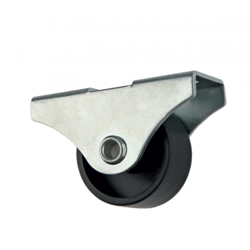 Колесо мебельное d=25 мм, без тормоза, неповоротное (прямоходное), с металлической площадкой для крепления.