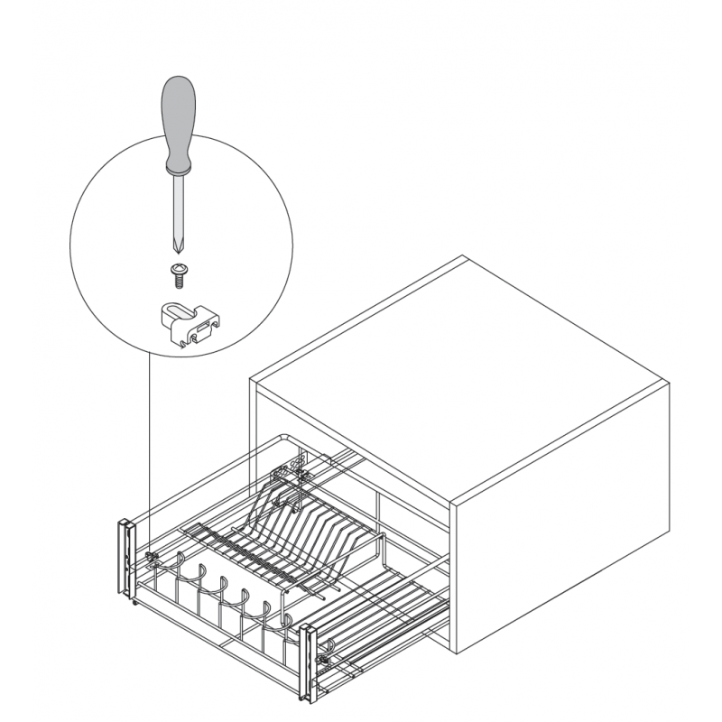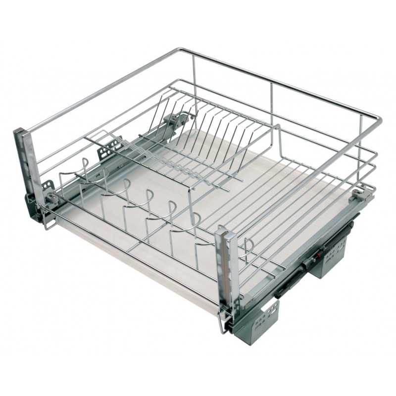 Выдвижная корзина-сушка призвана рационально организовать зону хранения посуды. Сетка для посуды предполагает наличие своего удобного места для каждой тарелки и чашки. Для другой посуды – пиалы, вазочки и пр. – предусмотрено свободное пространство. Расположение посуды в корзине-сушке продумано с точки зрения эргономики: на первом плане находится то, что используется чаще. Но и предметы дальнего плана легко доступны и удобны для пользования. В качестве выдвижной системы для этой модели корзины-сушки использованы шариковые направляющие скрытого монтажа с доводчиком. Этот современный механизм выдвижения гарантирует легкое и бесшумное скольжение корзины, а наличие доводчика обеспечивает плавный и мягкий ход корзины при закрывании. Несъемное металлическое крепление обеспечивает жесткое сцепление ящичного фасада и корзины в течение всего срока ее эксплуатации. Сетка корзины-сушки изготовлена из хромированной стали. Благодаря высокому качеству материала и покрытия сушка прочна, надежна и долговечна. Корзина-сушка, выполненная в цвете полированный хром, обладает стильным лаконичным дизайном. Эта модель корзины-сушки представлена в двух популярных размерах: с монтажными длинами 600 мм и 800 мм. Весь необходимый крепеж для быстрого и легкого монтажа имеется в комплекте.