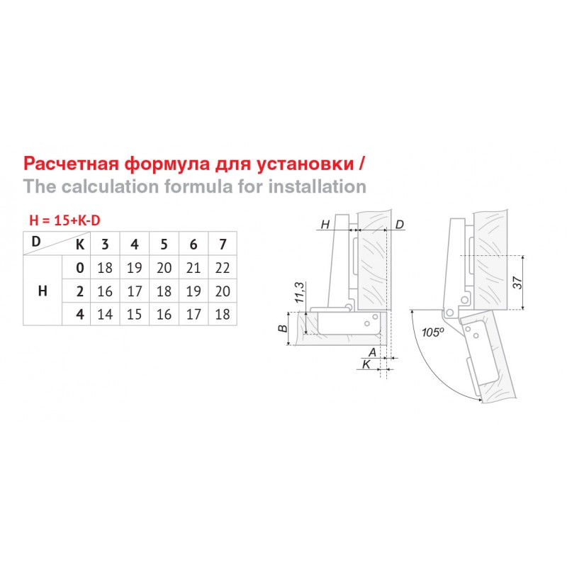 Петля и ответная планка. Евровинты, вкрученные в планку, в комплекте. Чашка без крепежа.