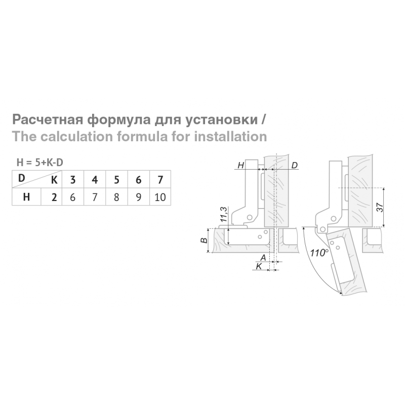 Угол открывания:110°