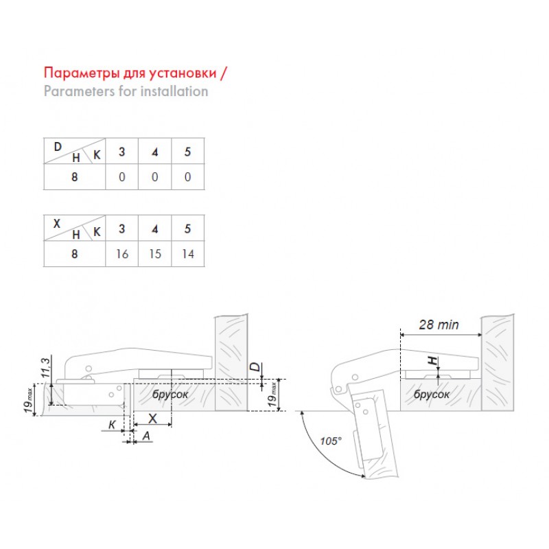 • Доп. крепежное отверстие в ответной планке: