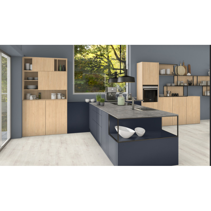 Индиго синий – это синий, почти чёрный декор из категории модных оттенков «Nearly Black» (почти чёрный). В мебели он используется для создания чрезвычайно элегантного контраста в сочетании с тёмно-коричневыми древесными декорами, как например, Орехом, и поэтому часто применяется в мебели для гостиной. Сочетания же с репродукциями материалов, например, бетона или стали, ассоциируются с оформлением в индустриальном стиле. Его элегантность в сочетании с удивительно бархатистой на ощупь и матовой на вид прочной поверхностью бумажно-слоистого пластика PT PerfectSense Topmatt придаёт этому декору ещё больше ценности.