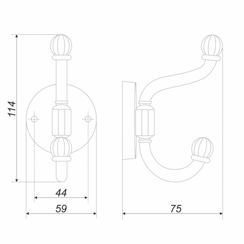 Коронованный двуглавый крючок самых изысканных форм. Он одновременно плавный и рельефный с резным центром и округлыми навершиями, крючок, будто замер в галантном приветствии. Изящный и вместе с тем надежный он отвечает сразу двум модным течениям: популярному скандинавскому стилю и актуальному тренду на черный цвет. Эта модель задаст особый характер интерьерам в классическом стиле, неоклассике, модерне и стиле лофт. Особенно хорошо будет выглядеть на контрастных, белых фасадах.