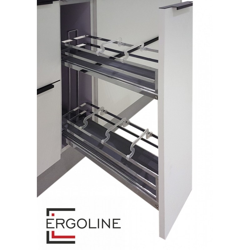 FLORA – это современная комфортная бутылочница, предназначенная для удобного хранения емкостей различной высоты в модулях шириной 150 или 200 мм.