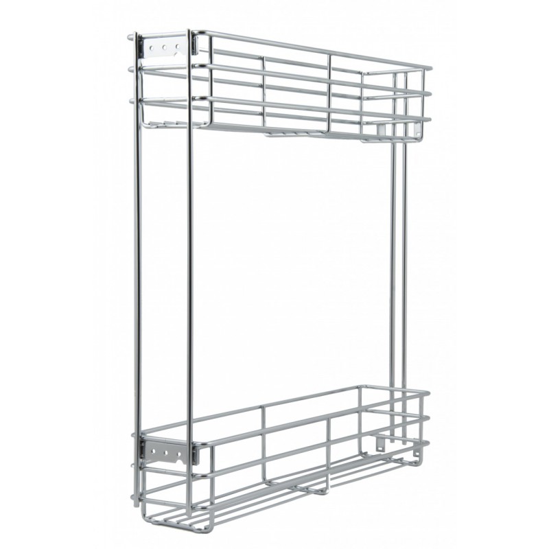 Бутылочница функционирует на направляющих скрытого монтажа, которые обеспечивают ровный и безопасный ход всей системы. KR08 обладает круглым прутком и является «сестрой» выдвижной двухуровневой корзины VENERA KR19, а в паре с бутылочницей в верхнюю базу BELLA UP KR35 поддержит тренд на равные доли.