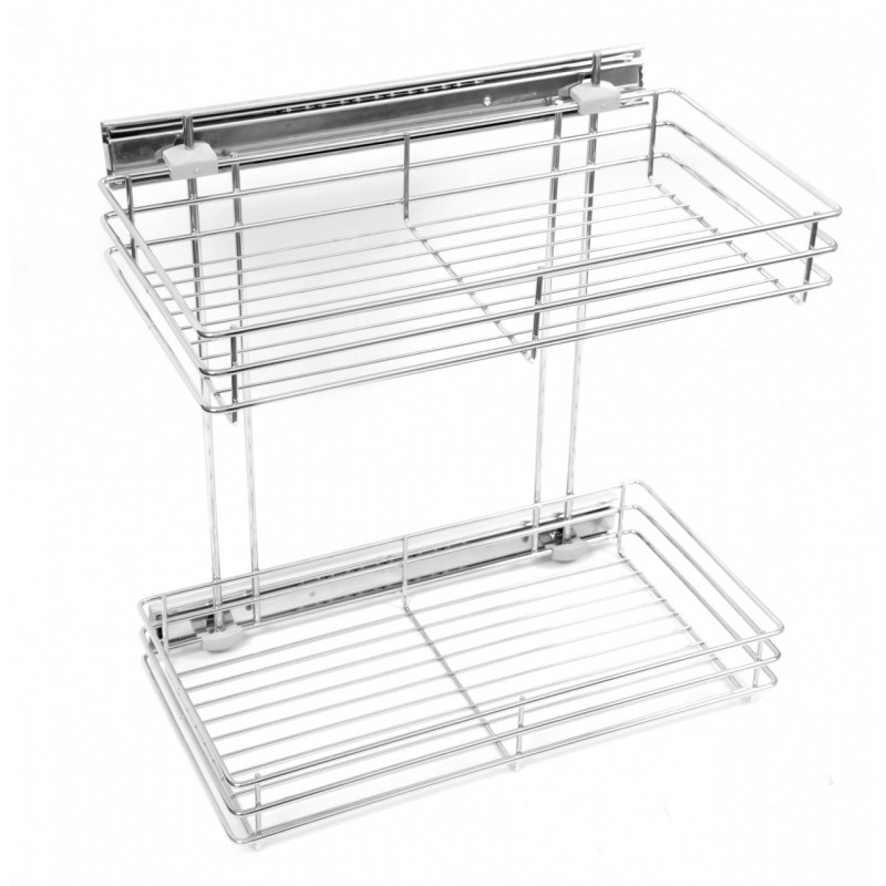 Удобная и вместительная выдвижная корзина займет место в шкафах-тумбах, так называемых «колоннах» или в нижних модулях гарнитура. Объем и формат корзины предполагают размещение практически любых необходимых в хозяйстве предметов. На нижнем уровне системы можно расположить кастрюли, чугунки, горшочки, гусятницу и т.п. Верхний «этаж» корзины подойдет для предметов поменьше: чашек, салатниц, вазочек, коробочек, банок с любым содержимым. Благодаря воздухопроницаемости сетчатого решения можно с успехом хранить в нем не только посуду, но и продукты. Крупы, сухое печенье, соусы, масла, сыпучие продукты – все, что угодно: что нужно постоянно и что может быть необходимо время от времени. Высота нижнего уровня дает возможность разместить на нем высокие предметы – бутылки, банки, сосуды. Благодаря своей функциональности, универсальности и вместительности корзина позволяет хранить практически любые предметы или продукты, то, что удобнее для хозяйки в конкретной кухонной зоне.