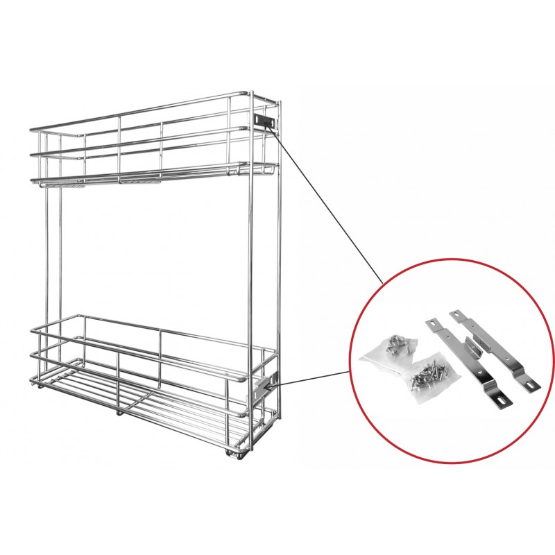 Современная модель бутылочницы Bella с системой выдвижения нового поколения с амортизацией и синхронизацией бокового крепления предназначена для удобного и безопасного хранения бутылок разной высоты на нижней сетке и более мелких на верхней. Изящная и стильная, модель займет узкие ниши в шкафах или пространствах в нижних модулях гарнитура. Такая сетчатая конструкция может стать хранилищем для различных бутылок с маслом, уксусом, соусами в зоне приготовления пищи, либо чистящих средств в зоне мойки, а также может заменить мини-бар, если использовать ее для хранения бутылок с алкоголем.