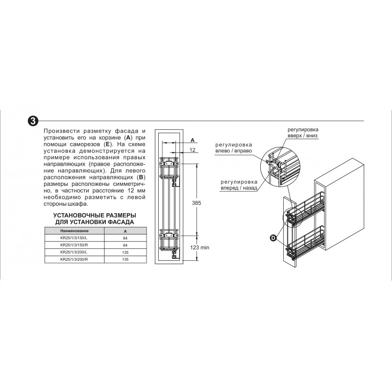 Модель представлена в 4-х вариантах: для модулей размером 150 мм и 200 мм с левым или правым расположением направляющих. Имеет жесткое крепление к фасаду. Нагрузка 15 кг для модели шириной 150 мм и 20 кг – для 200 мм соответственно.