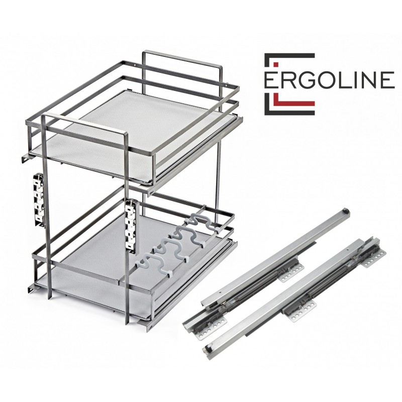 Выдвижная двухуровневая корзина QUADRA – стильное решение для эффективного хранения бытовой или кухонной утвари в модулях шириной 300 и 400 мм. Оба этажа обладают сплошным дном с антискользящим покрытием стильного графитового цвета. Дно можно легко снять для чистки и мойки. В нижнем ярусе модели предусмотрены дополнительные съемные делители для устойчивого хранения небольших емкостей или пакетов с сыпучими продуктами. Система выдерживает высокую нагрузку – 30 кг на оба яруса и рассчитана на надежную работу на протяжении 50000 циклов открывания/закрывания. Модель устанавливается на дно модуля с помощью направляющих нового поколения с синхронизацией и доведением длиной 450 мм. Модель обладает стильным европейским дизайном и отлично дополнит интерьеры в стилях хай-тек, минимализм, контемпорари, лофт.