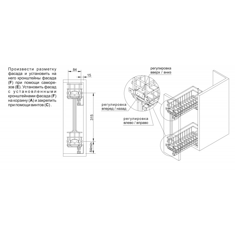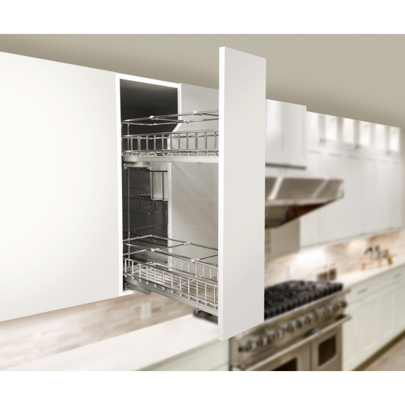 Бутылочница в верхнюю базу BELLA UP – аккуратная и практичная выдвижная корзина, предназначенная для установки в верхние модули кухонного гарнитура. Этот продукт позволит повысить эргономичность кухни и сделать хранение более организованным. В KR35 удобно расположить баночки со специями, бутылочки с уксусом, маслами и соусами – иными словами все, что необходимо иметь под рукой во время готовки или хранить вдали от детей.