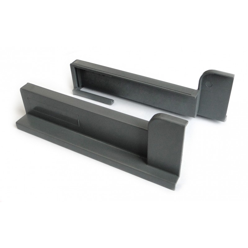 Опциональный комплект держателей фасада с 3D-регулировкой для установки выдвижной мусорной корзины MAX KR32 в отдельный мебельный короб. Комплект состоит из 2 верхних и 2 нижних держателей фасада и 2 декоративных пластиковых заглушек. Кроме того, в комплекте уже есть весь необходимый для установки держателей крепёж.