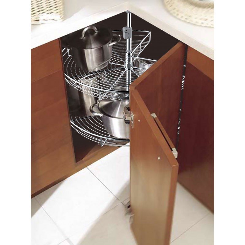 Модель RONDO функциональна и эстетична. Сетки корзин выполнены из высокопрочной стальной проволоки, обладают выверенной высотой боковых ограничителей для удобного и надежного хранения кухонных предметов и их устойчивого расположения даже при вращении корзин.
