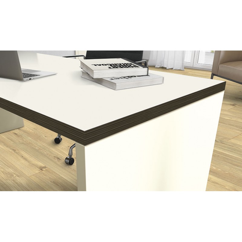 Кромка Линия чёрная может выступать в качестве яркого графического акцента к очень большому количеству однотонных декоров, репродукций древесины и материалов. Особенно гармонично она смотрится с имитацией алюминия, однотонным декором Чёрный или с древесными репродукциями чёрного оттенка. Линейная структура кромки имеет рельеф, который можно почувствовать при прикосновении.