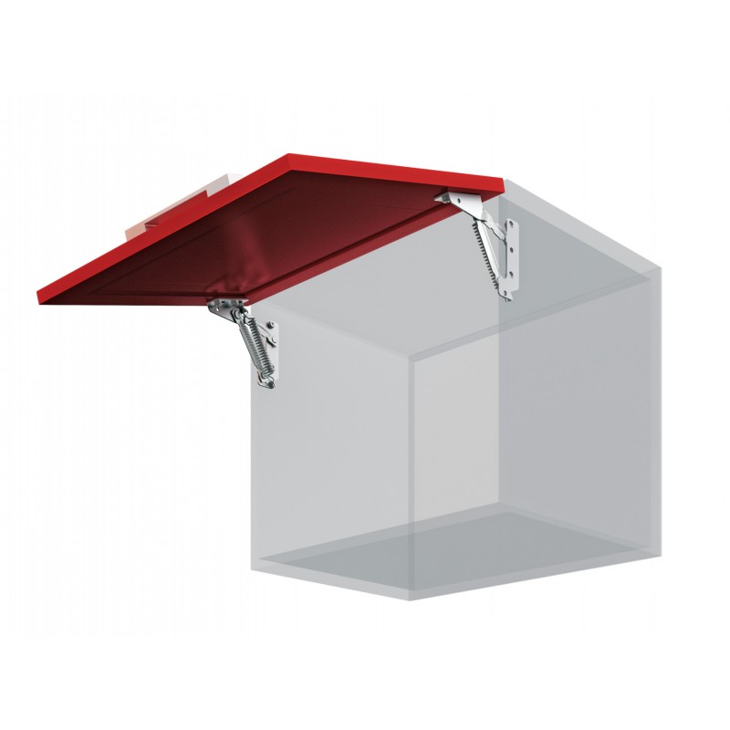 Петля антресольная, комплект левая L и правая R. Используется для дверей, открывающихся вверх. Конструкция снабжена пружиной, за счёт которой дверь открывается и фиксируется в закрытом и открытом положении. Угол открывания 75 градусов. Максимально допустимая нагрузка (на пару) - 2 кг.