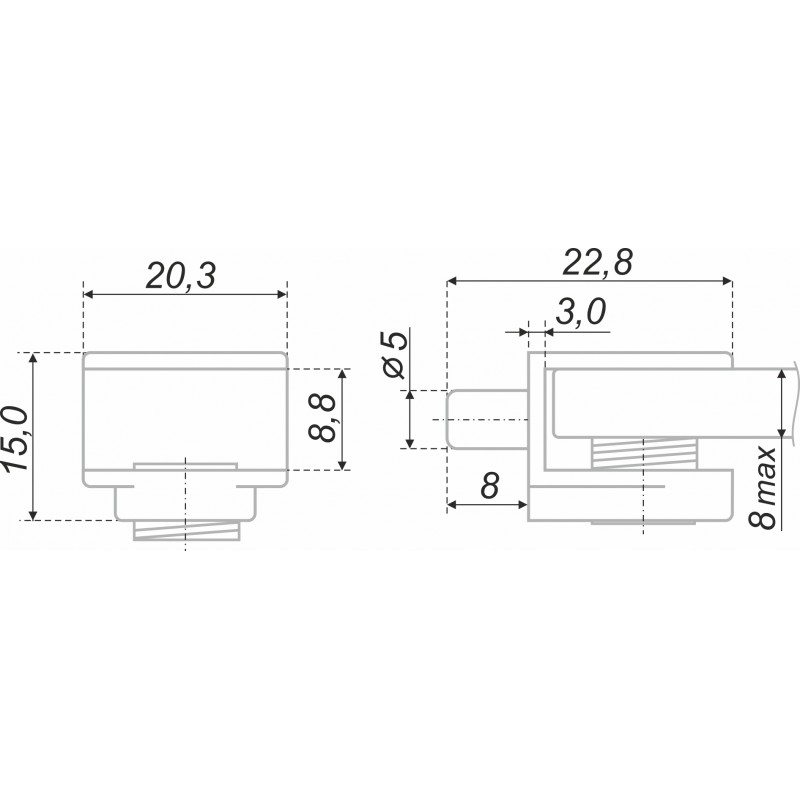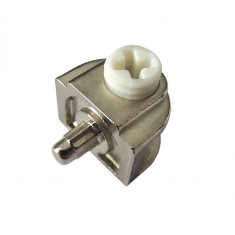 Металлический полкодержатель для стеклянных или тонких фанерных полок с опорой полочкой и регулируемым фиксатором теперь обладает модернизированной формой опорного штифта для большей функциональности и удобства