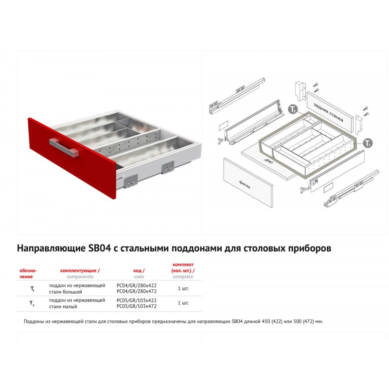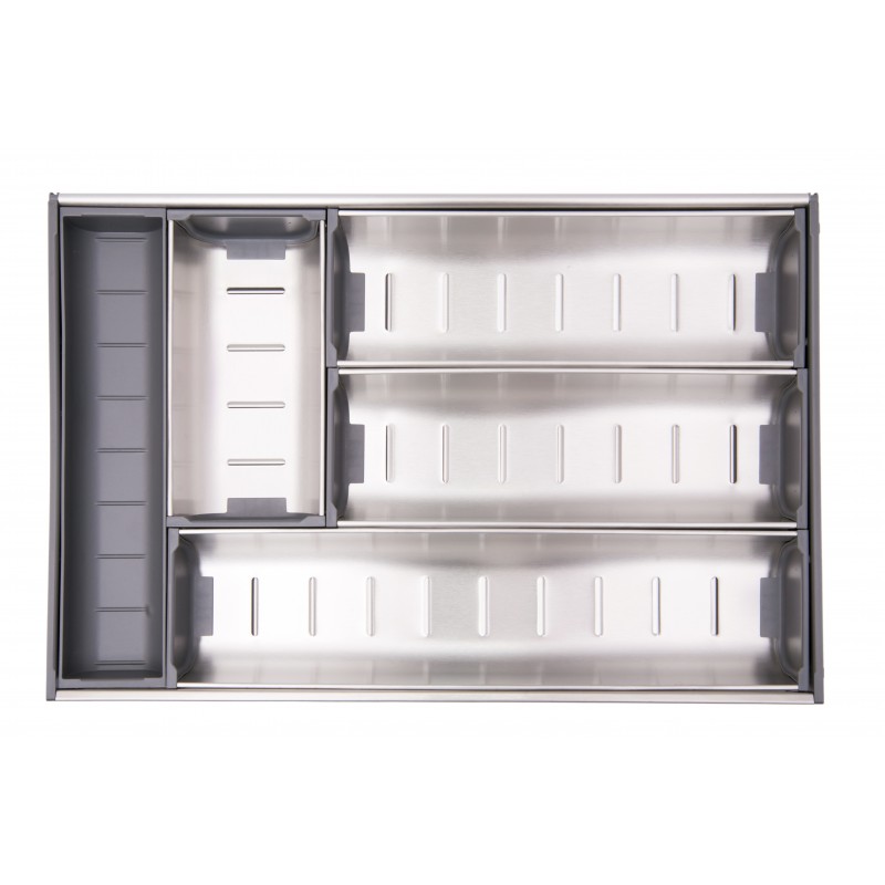 Сборные поддоны из нержавеющей стали позволяют организовать внутреннее пространство выдвижных ящиков.