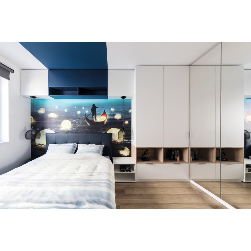 Темный декор U504 Альпийское озеро относится к серо-синим оттенкам, которые за счет своего сдержанного характера создают гармоничные сочетания с актуальными сегодня естественными древесными декорами с некоторой долей серого цвета.