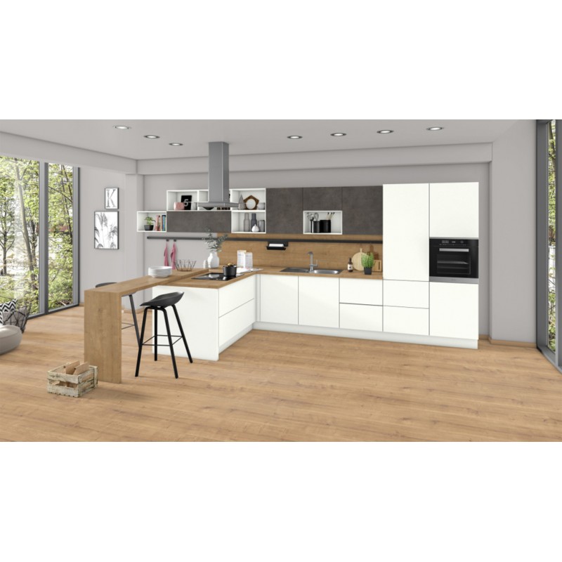 Дуб Гамильтон натуральный – это совершенно аутентичная репродукция дуба классически натурального оттенка с выразительными тёмными природными включениями древесины и сучьями. Рисунок декора происходит из сферы напольных покрытий. Таким образом, даже при использовании этого декора в производстве мебели создаётся впечатление, что она изготовлена из цельных досок. В дизайне мебели данный декор уже завоевал признание и часто комбинируется с чистым белым цветом в качестве успокаивающего контраста. Он также хорошо подходит для использования на больших площадях во внутренней отделке помещений, так как благодаря увеличенному раппорту в формате XL выразительные элементы узора повторяются не так часто. Структура ST10 Шероховатые глубокие поры создаёт ощущение натурального материала.Декор с определенным направлением рисунка.Подборка «Единство в интерьере» включает в себя декоры напольных покрытий и плитной продукции для мебели и внутренней отделки компании ЭГГЕР, выполненные в едином дизайне или сочетающиеся друг с другом по цвету. Декор плитной продукции H3303 ST10 является аналогом декора EPL103 ламинированных напольных покрытий из коллекции EGGER PRO 2021+.