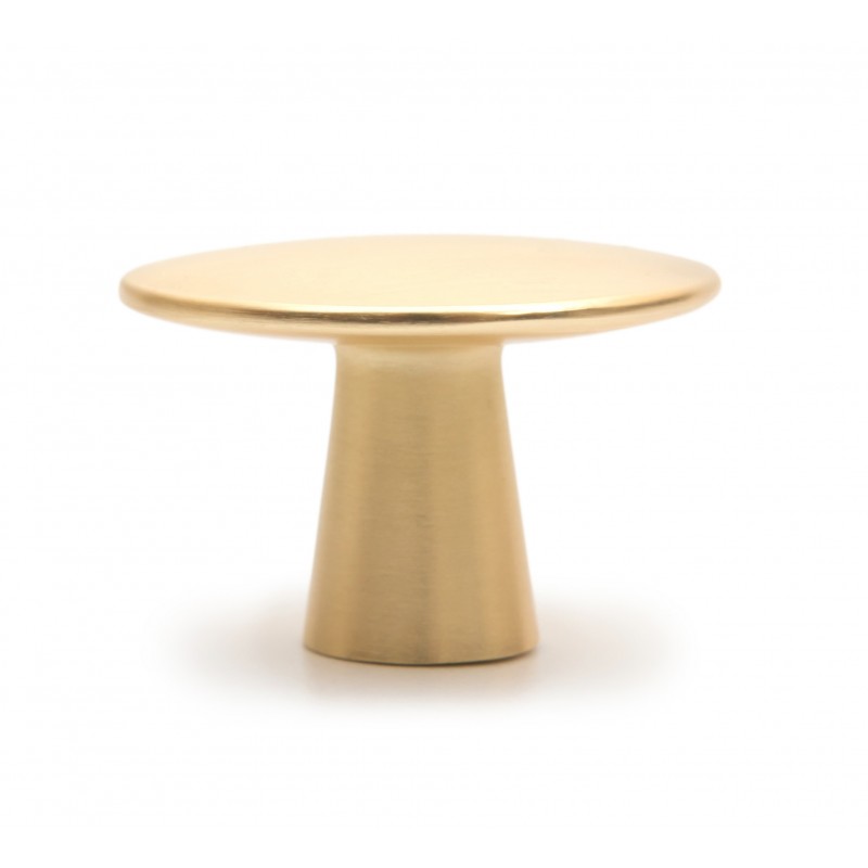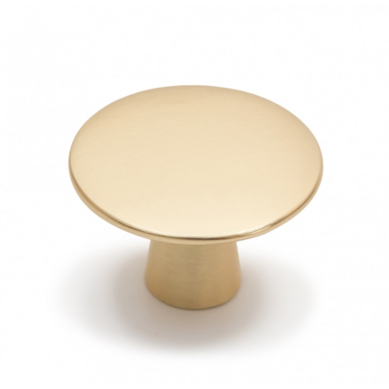 Ручка-кнопка с круглой шляпкой диаметром 40 мм и расширяющимся книзу основанием обладает эргономичной формой. За нее приятно и легко браться и открывать фасад как детям с маленькими ручками, так и взрослым. Модель станет отличным дополнением практически к любым современным фасадам: из светлого или темного дерева или с фактурой древесины, к фрезерованным или гладким глянцевым и матовым, однотонным или цветным фасадам.