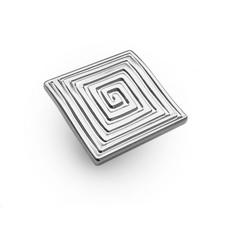 RC090CP.4 - современная геометричная кнопка с этническим настроением. Холодная строгость ее линий прорезана спиралевидным греческим узором, благодаря чему ручка выглядит динамично и живо в любом интерьере. Форма кнопки на первый взгляд очень простая, но на самом деле верхняя площадка имеет легкий изгиб для того, чтобы пальцы могли удобнее обхватить квадратную ручку.