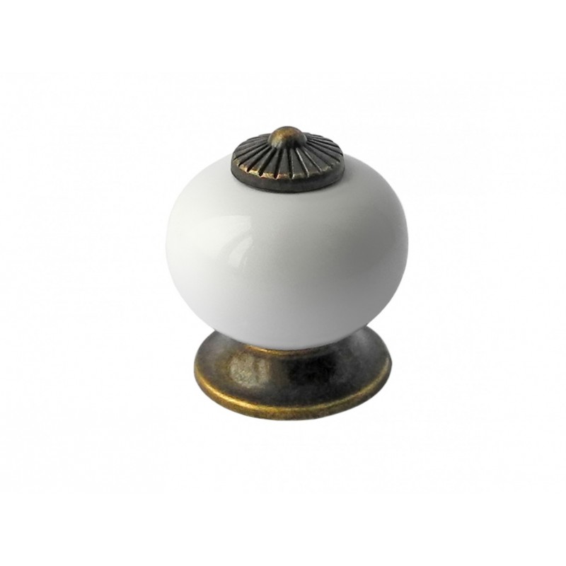 Керамическая кнопка-кокетка. Круглая ручка в белом исполнении с металлическим основанием и вставкой в цвете АВ станет украшением интерьеров в деревенском стиле, направлениях Прованс, Шебби-шик, традиционная классика, эклектика, модерн.