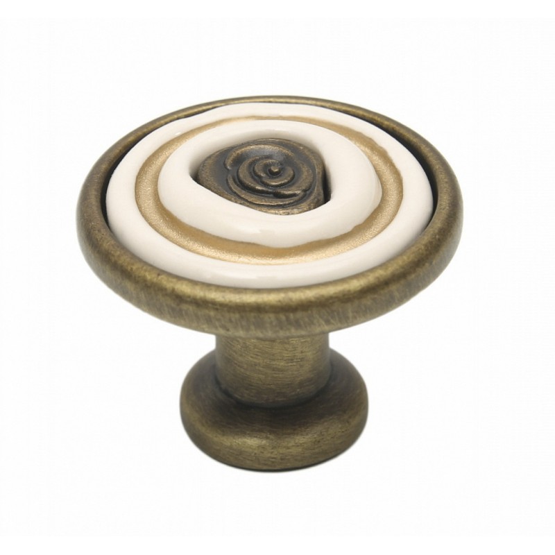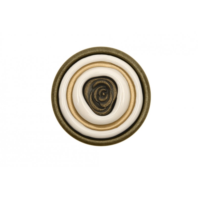 С металлом в состаренных покрытиях сочетается керамическая вставка, украшенная розой. Ручка напоминает произведение искусства – старинную камею, изящное изделие для украшения интерьера. Это не просто ручки для открывания фасада – это детали декора, создающего облик мебели.