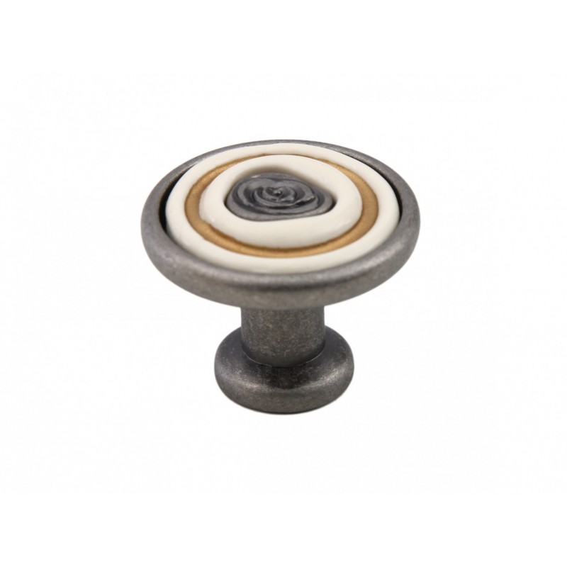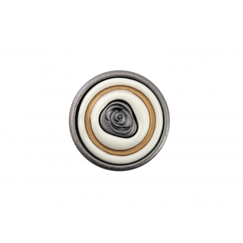 С металлом в состаренных покрытиях сочетается керамическая вставка, украшенная розой. Ручка напоминает произведение искусства – старинную камею, изящное изделие для украшения интерьера. Это не просто ручки для открывания фасада – это детали декора, создающего облик мебели.