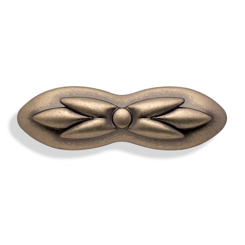 Ручка с растительным рисунком будет хороша на натуральных древесных фасадах или фасадах в покрытии с фактурой дерева, на мебели с фрезеровкой и даже патиной.