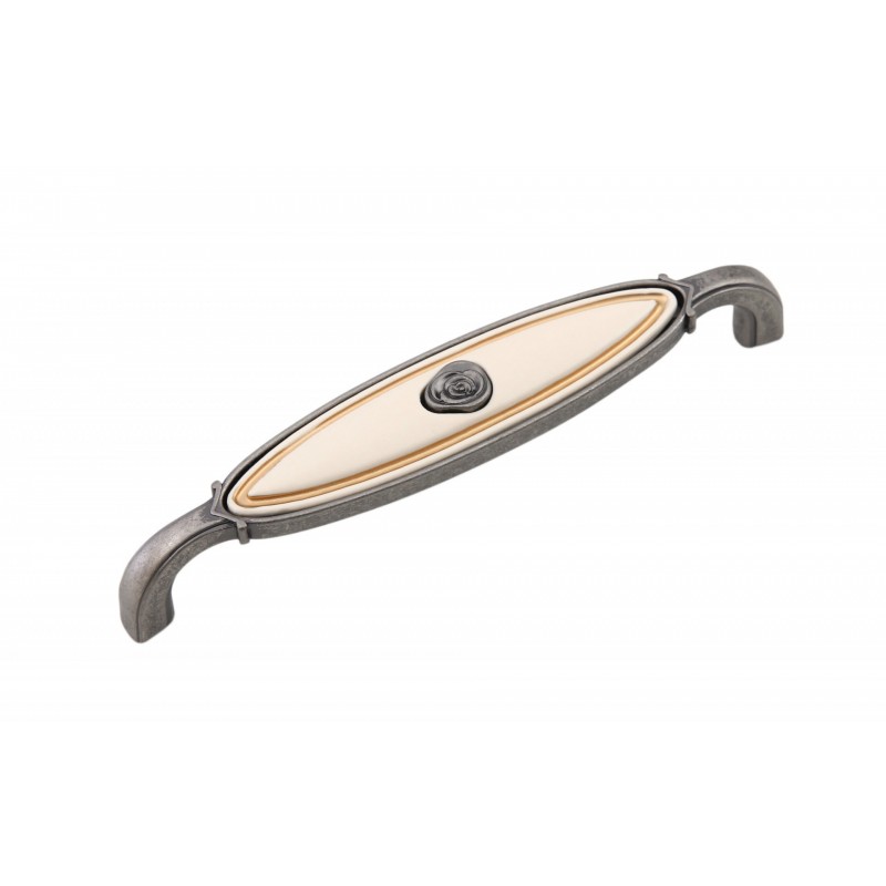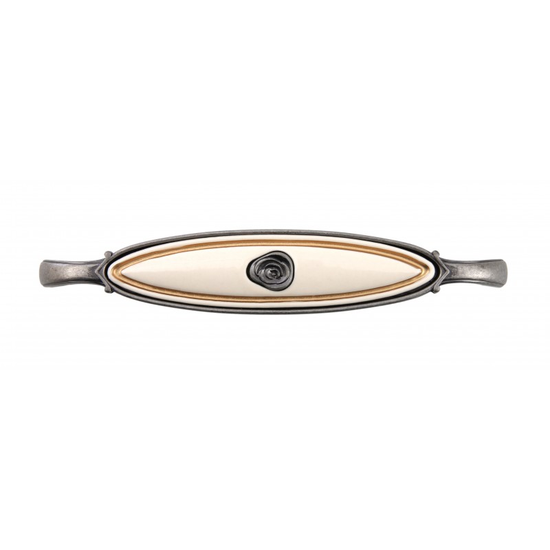 С металлом в состаренных покрытиях сочетается керамическая вставка, украшенная розой. Ручка напоминает произведение искусства – старинную камею, изящное изделие для украшения интерьера. Это не просто ручки для открывания фасада – это детали декора, создающего облик мебели.