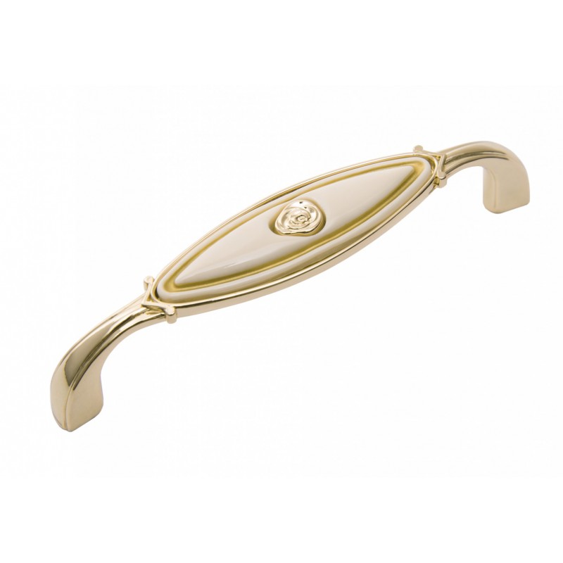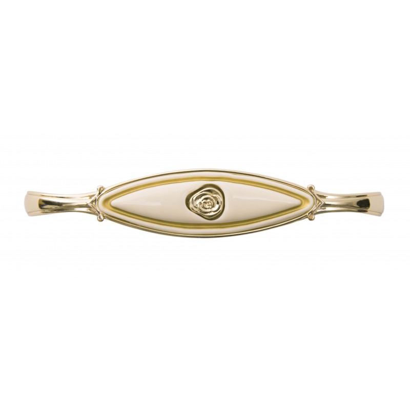 С металлом в состаренных покрытиях сочетается керамическая вставка, украшенная розой. Ручка напоминает произведение искусства – старинную камею, изящное изделие для украшения интерьера. Это не просто ручки для открывания фасада – это детали декора, создающего облик мебели.
