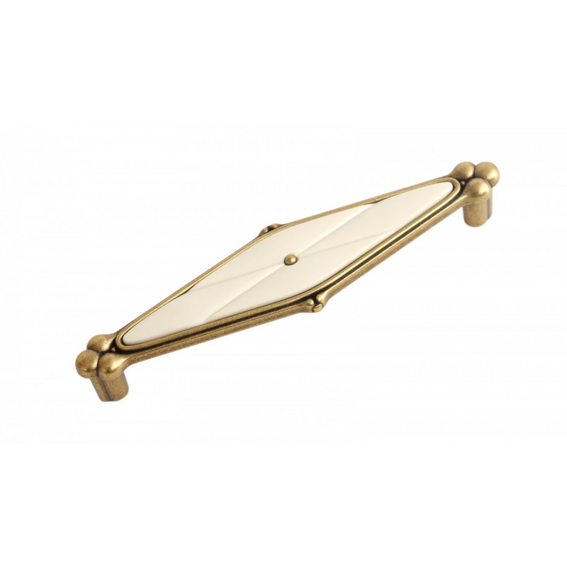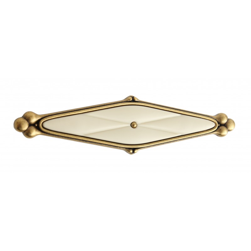 Модель DIVA RS118 – утонченная ручка, созданная по всем канонам стиля Romantica. Изящный ромб с округлыми контурами, нежная вставка молочного оттенка и искусное покрытие, имитирующее состаренный металл - всё это навевает мысли об очаровании антикварной мебели.