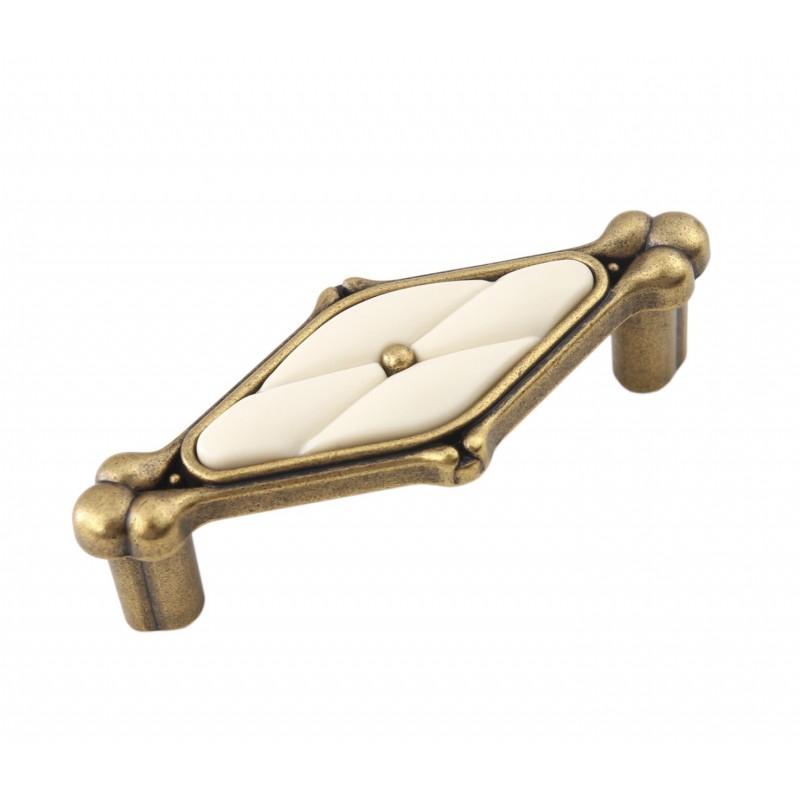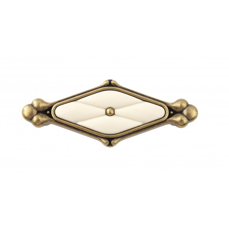 Модель DIVA RS118 – утонченная ручка, созданная по всем канонам стиля Romantica. Изящный ромб с округлыми контурами, нежная вставка молочного оттенка и искусное покрытие, имитирующее состаренный металл - всё это навевает мысли об очаровании антикварной мебели. Ручка представлена в двух вариантах покрытий. DIVA в покрытии «Матовая старинная латунь» будет наиболее гармонично выглядеть на фасадах в светлых и теплых оттенках. Покрытие «Черненый старинный цинк» придаст благородство фасадам в холодных, дымчатых оттенках дерева.
